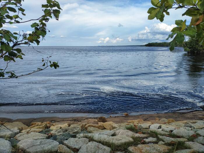 Pantai ini punya ciri khas yang berbeda. Alih-alih berwarna biru, air pantainya justru berwarna cokelat khas pesisir timur Sumatera.