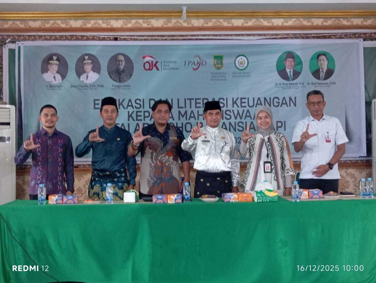 BAGANSIAPIAPI – PT Bank Riau Kepri Syariah (Perseroda) Cabang Bagansiapiapi bersinergi dengan Otoritas Jasa Keuangan (OJK) Provinsi Riau melaksanakan kegiatan edukasi dan literasi keuangan di Kampus STAI Ar Ridho Bagansiapiapi, Kabupaten Rokan Hilir.
