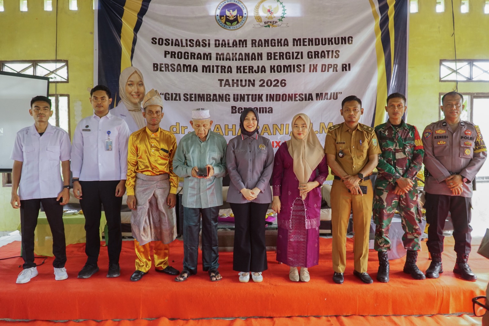 Kegiatan sosialisasi ini dihadiri oleh Anggota Komisi IX DPR RI, dr. Maharani, M.M, Koordinator Regional Badan Gizi Nasional (BGN) Riau, Achmad Wardana, S.T., M.Han, dan masyarakat setempat.
